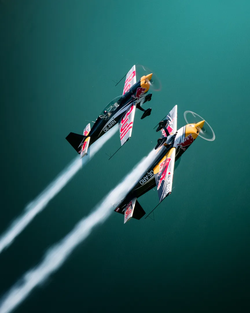 The two-seater sisters, the Flying Bulls' Extra 330LX are used as media machines for aerobatic briefings and for individual performances at aviation events, but have also made appearances at airshows in Germany and Austria and initially flew worldwide for the former Red Bull Air Race.