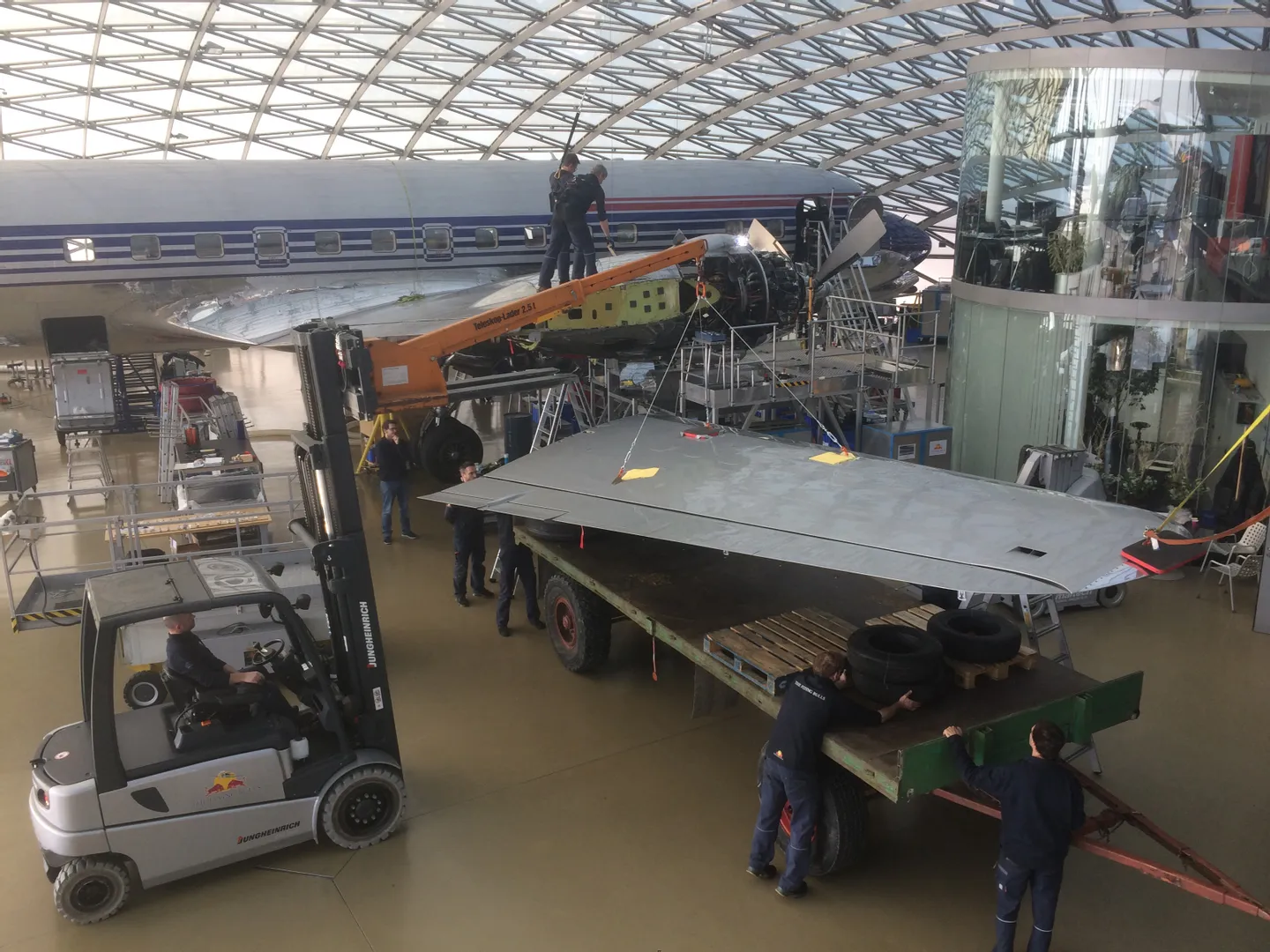 It is a small cause with a major consequence: a few rivets in the aircraft’s tank are leaking and need to be repaired. As one cannot access the tank directly, the right wing needed to be removed. This represents a major organisational challenge. Our technicians have had to detach a number of bolts, the cabling, and the control lines before they could - very carefully - lower the wing step-by-step. In the course of this disassembly project, the removed wing will be newly painted for the first time in 15 years before being returned to its original position.